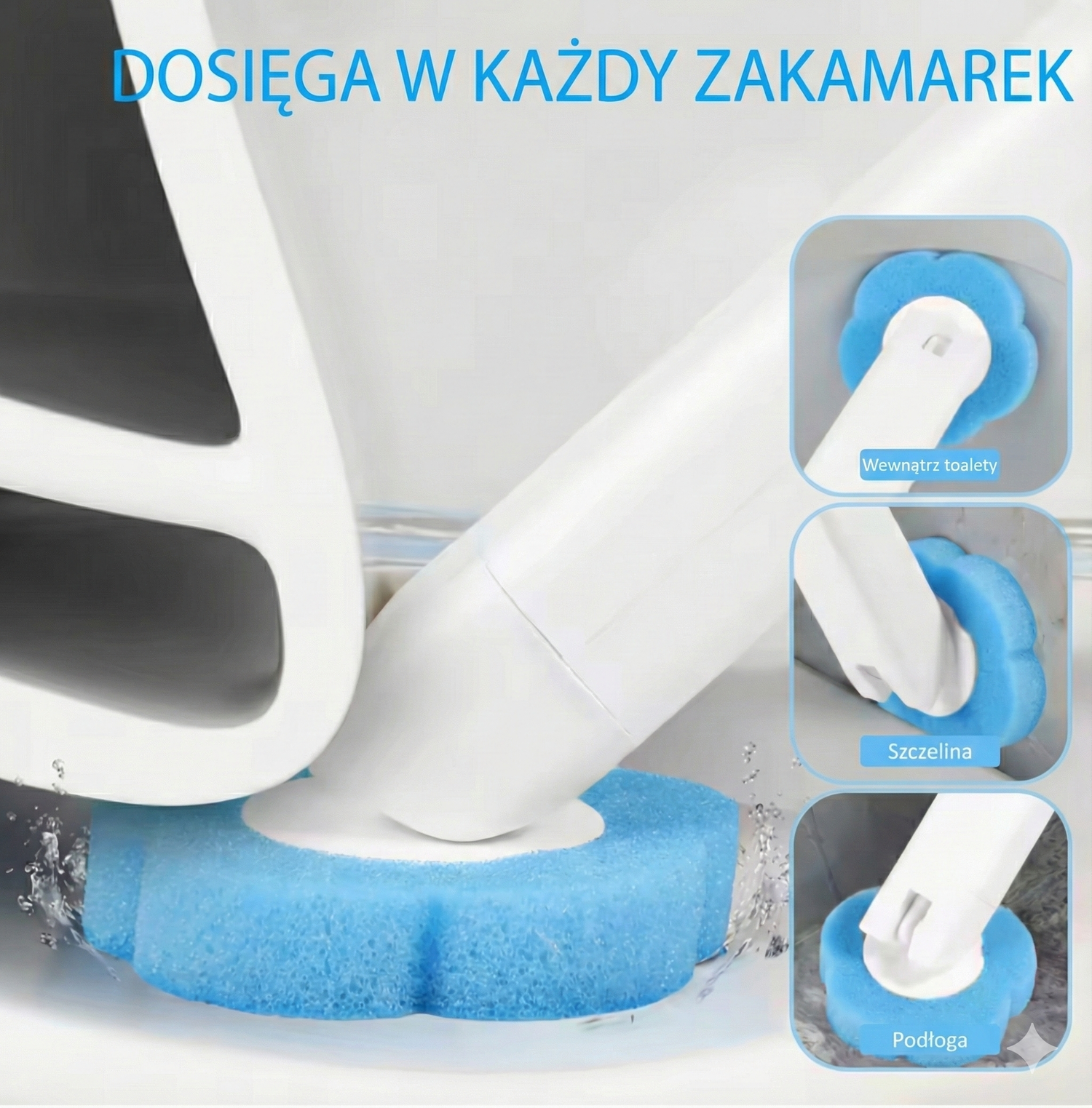 Elastyczna szczotka 360° bez trudu czyści zakamarki pod krawędzią muszli, gdzie zwykłe szczotki nie mają szans.